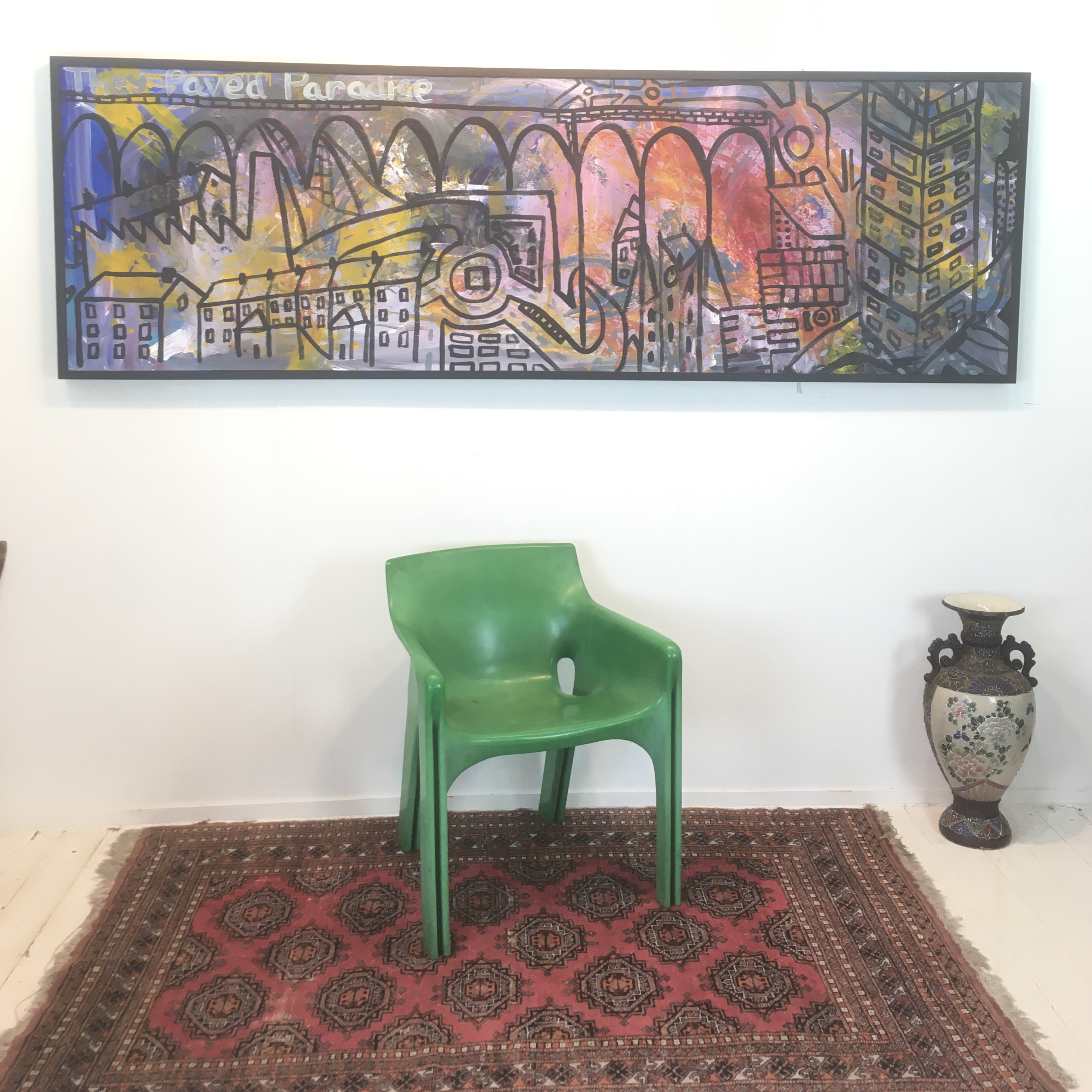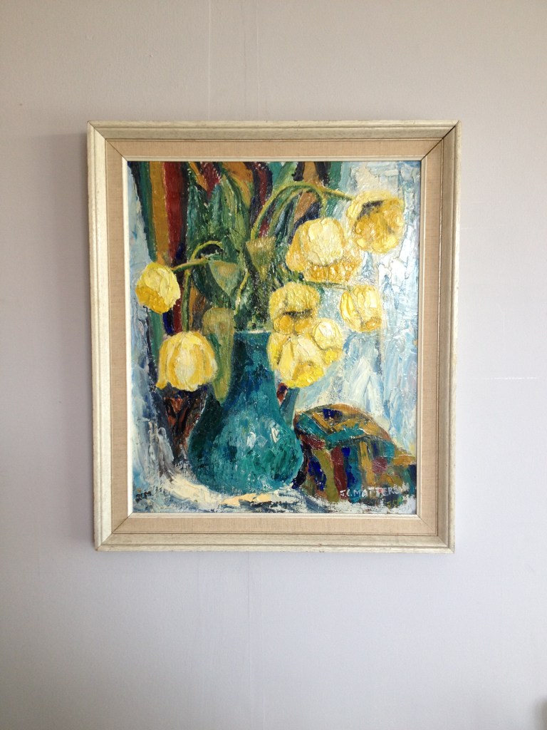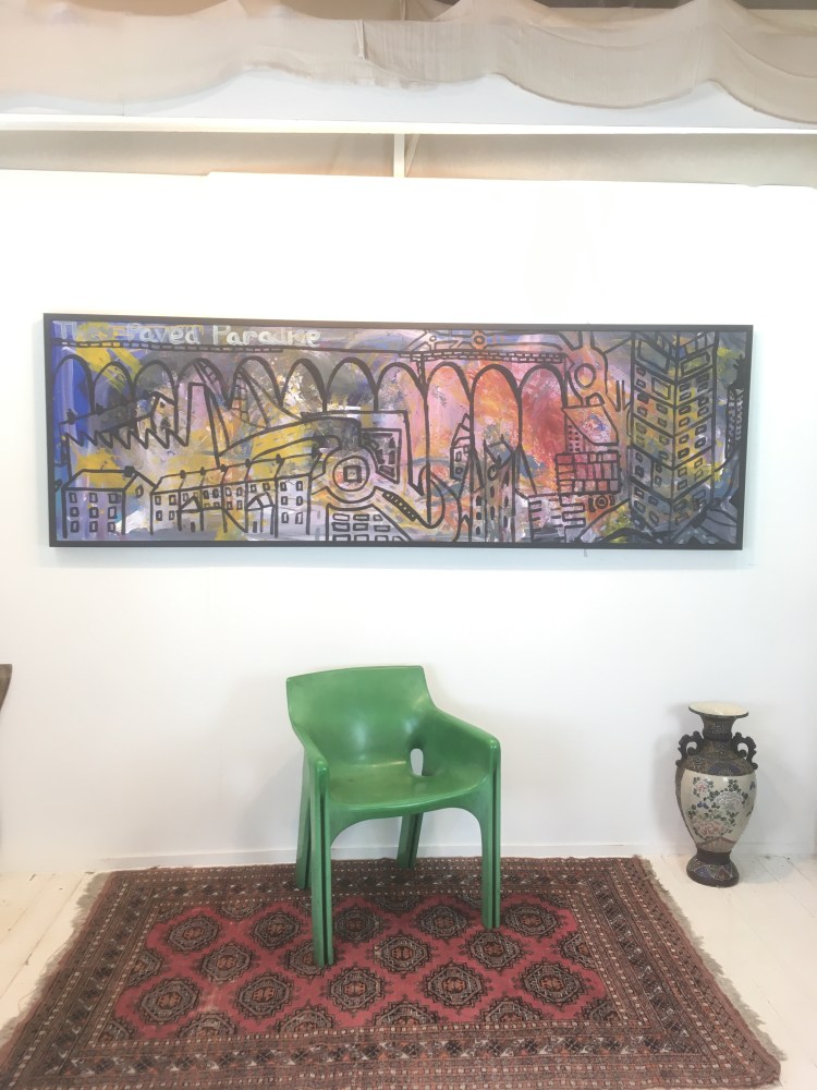 For the last ten years I have very much enjoyed the freedom of self-employment and being creative. Now I have found a lovely balance, writing, painting and buying and selling. This is the balance I have searched for all my life. Enjoying creative activities that make me smile and give me a true sense of joy. My paintings are large raw, real and full of energy – Mass popularity is not my goal.