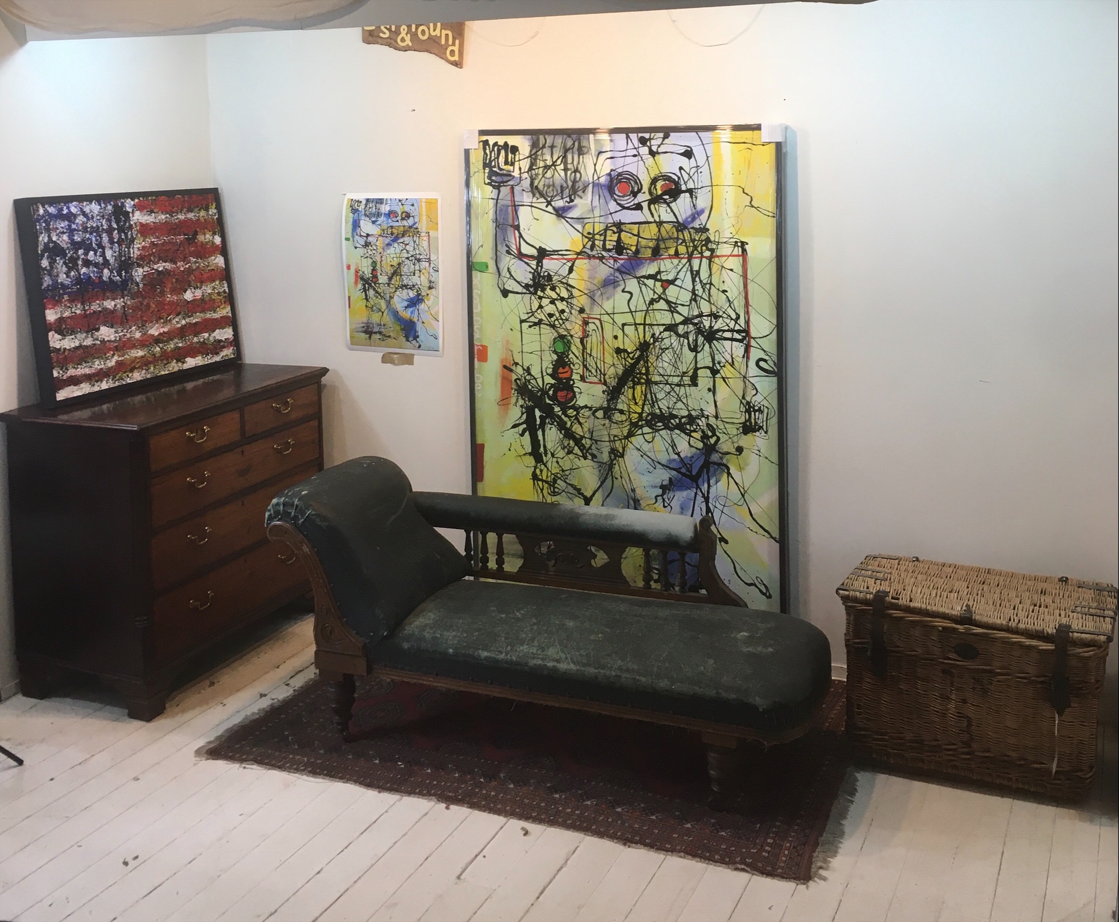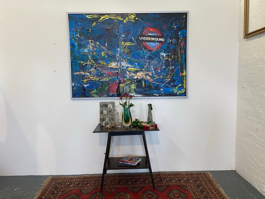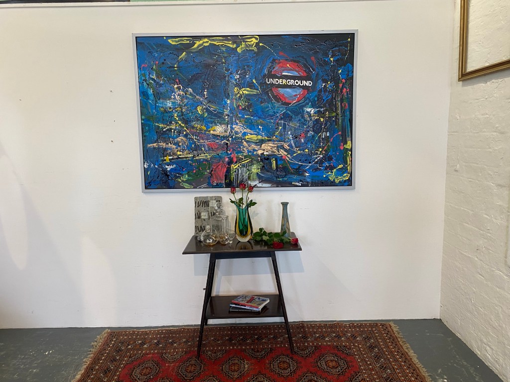 American Fever Dream 100cm x 140cm Underground – 100cm x 140cm Underground – Mixed media on board – £399Layered Abstract B&W #2 – 240cm x 75cm on canvas – framed view at Preston Antiques Centre – Sale price £59978cm x 108cm Now Sold Mixed media on canvas – abstract figure – heavy wooden frame Heavy frame – sail cloth canvas – layers to add texture and depth