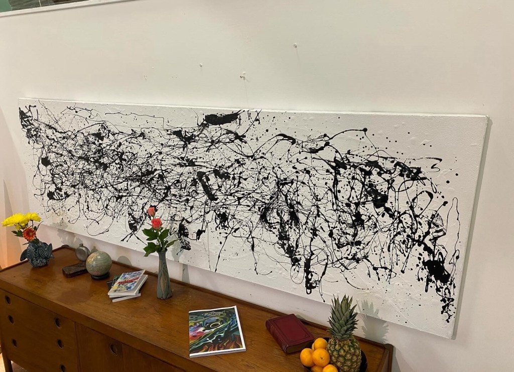 Another recent commission hung in its new home – Black&White #3 on canvas 155cm x 104cm