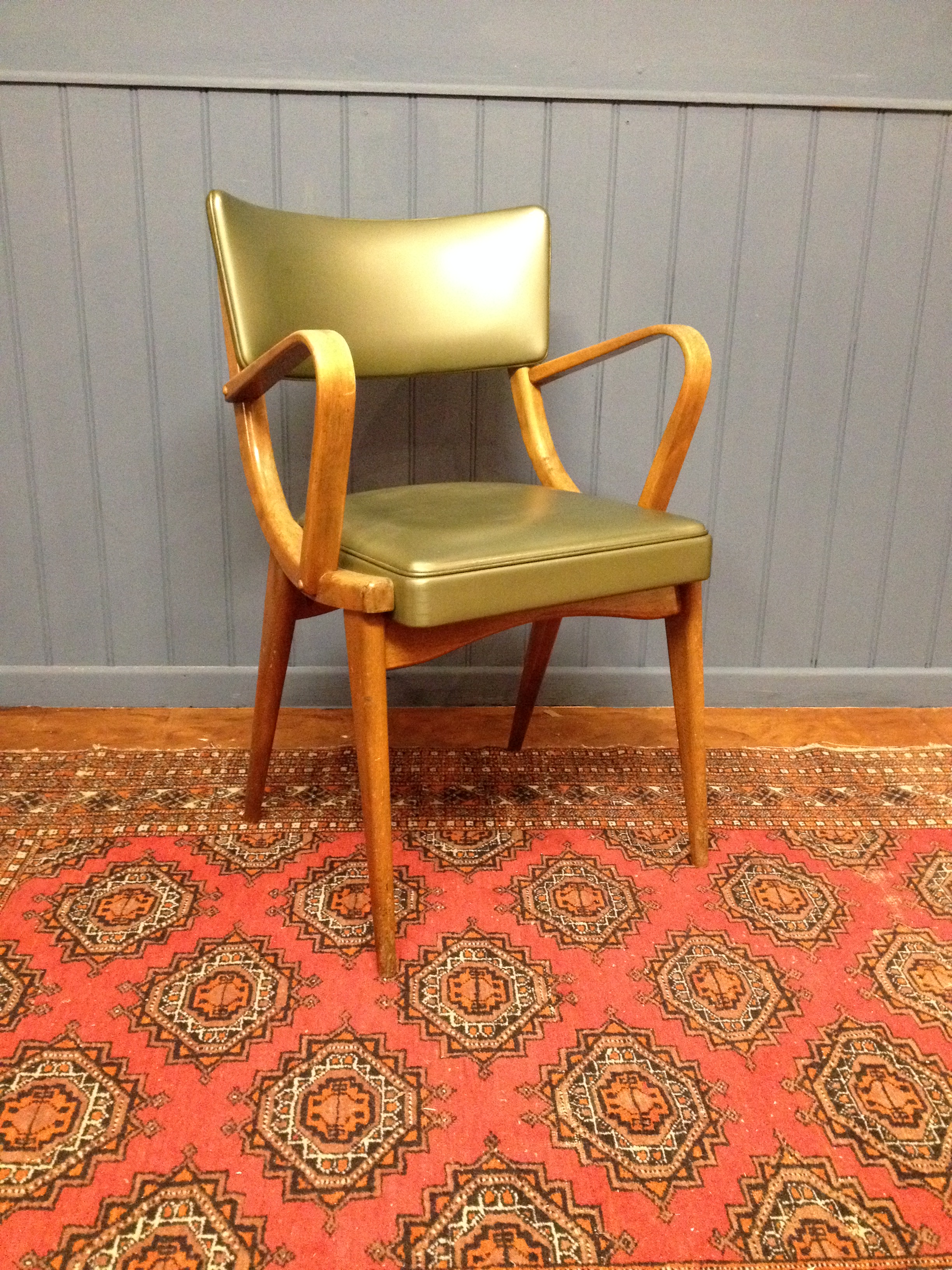 Previous Image Next Image chaise-2 Ben chair – wonderful shape – green vinyl – would make a great desk companion £85