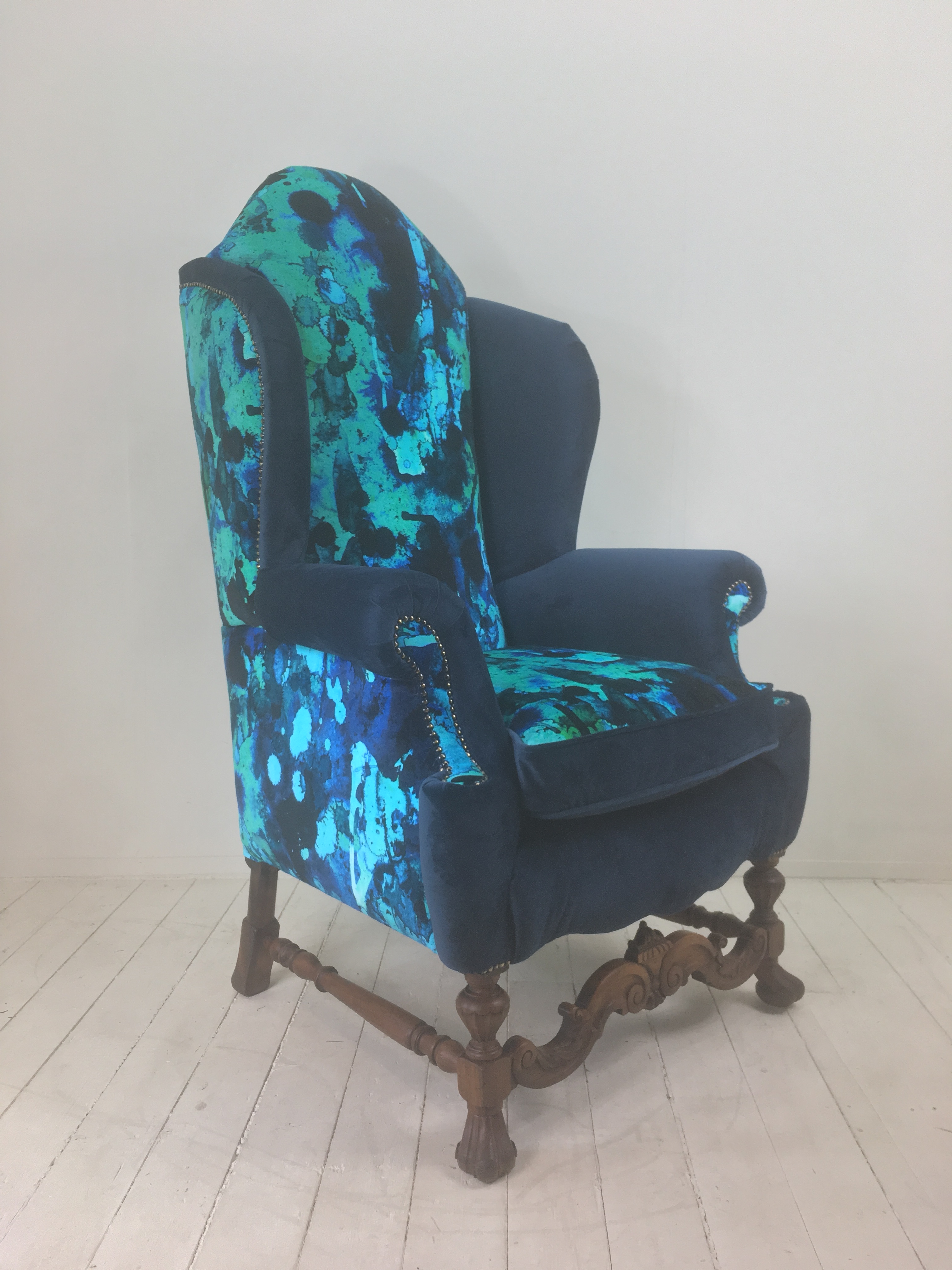 Coil sprung seat and back – top quality – hand made original Timorous Beasties Storm Blotch fabric