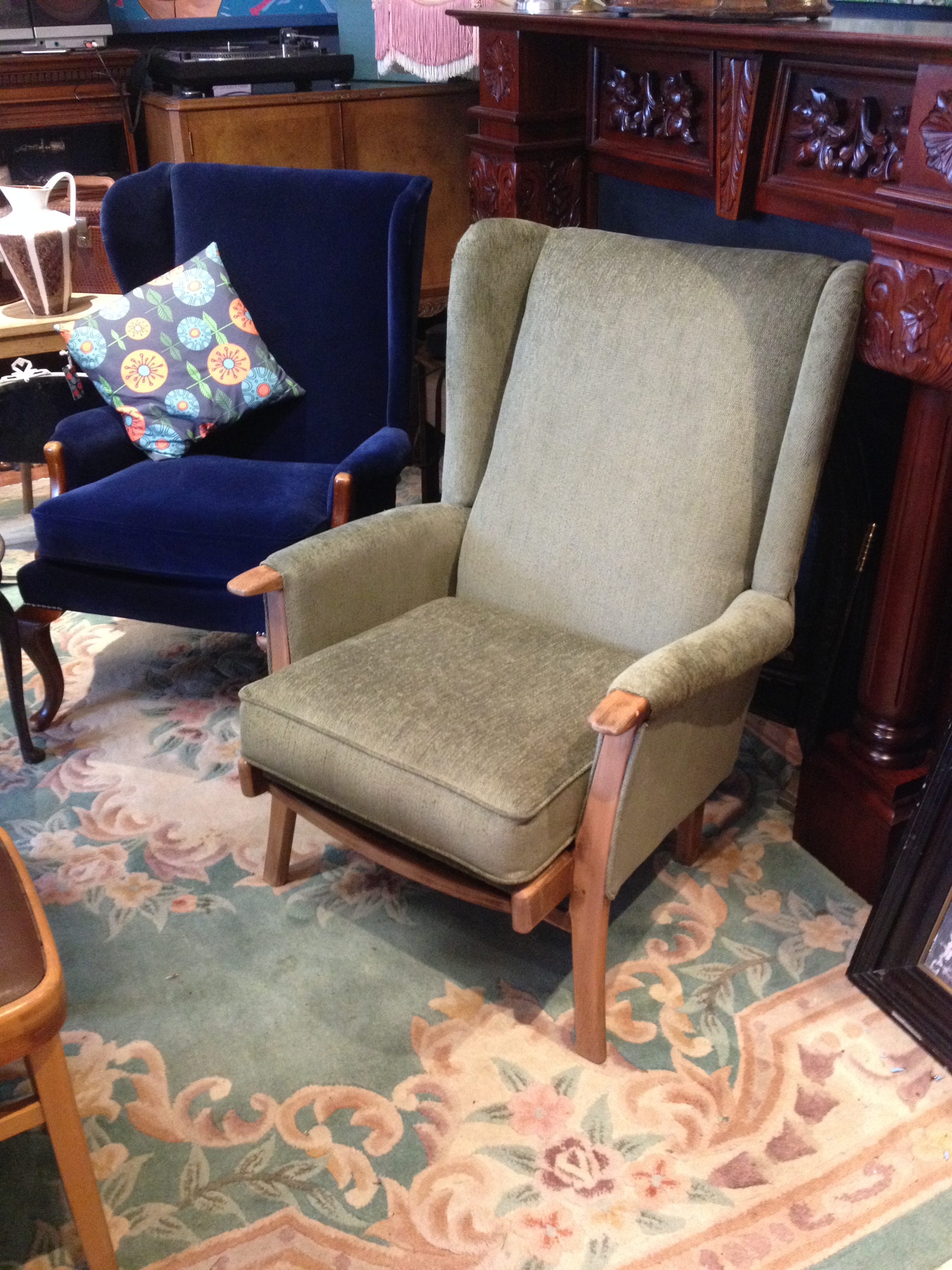 Previous Image Next Image Fireside chair – reupholstered wingback newly done and ready to go – lovely size – lets welcome winter £300