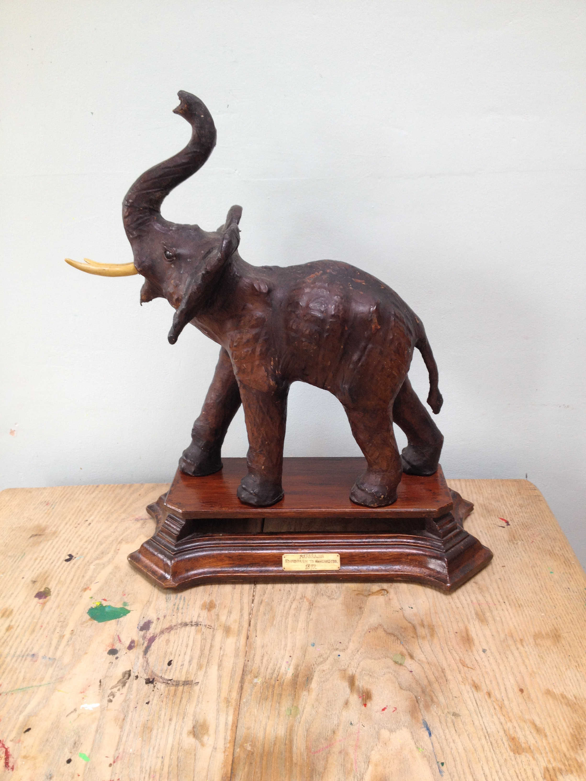 1872 – model of elephant Maharajah – who walked from Edinburgh to Bell Vue Botanical Gardens with his keeper – superb piece – leather