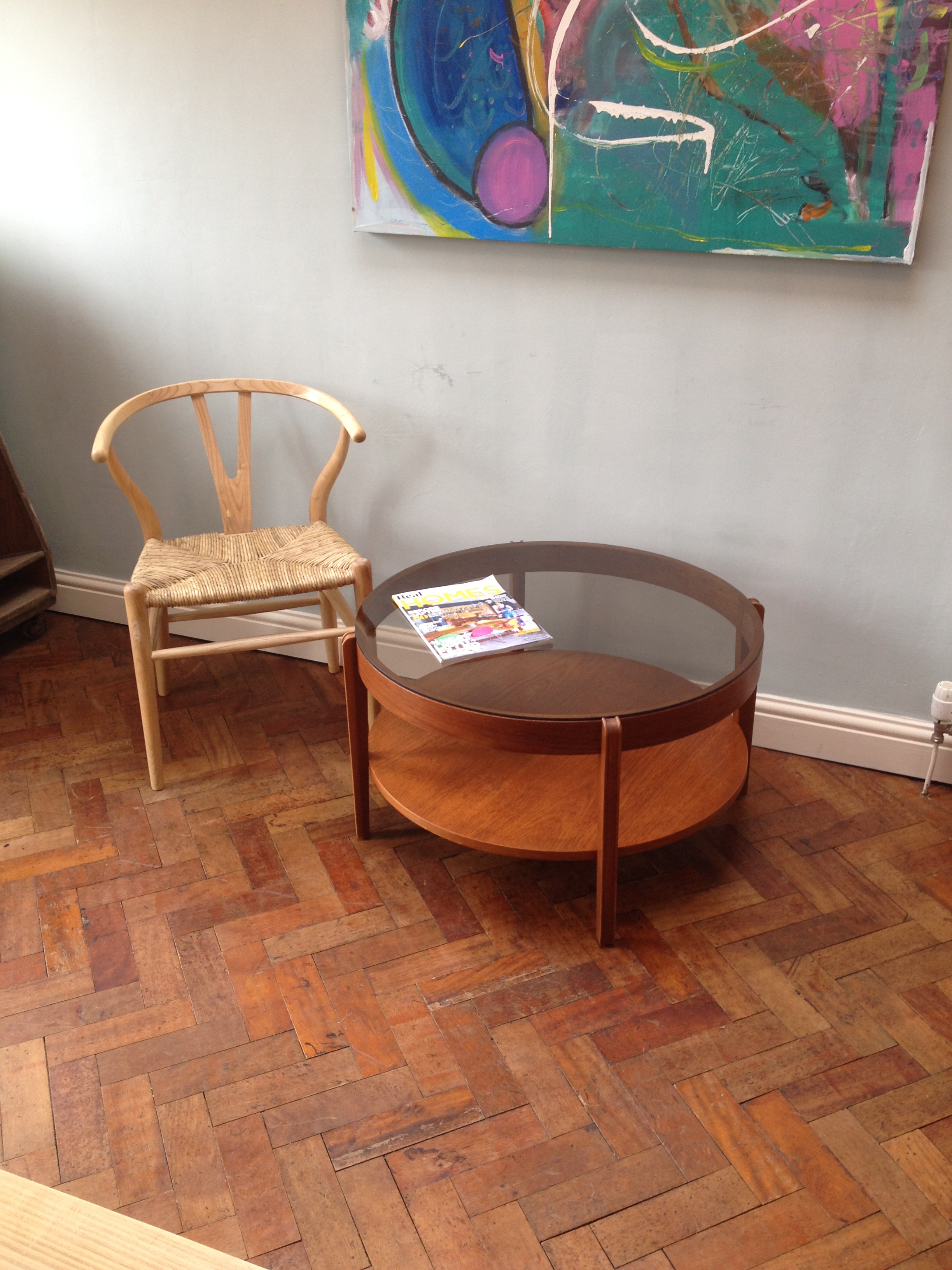 smoked glass top teak 70’s coffee table £80