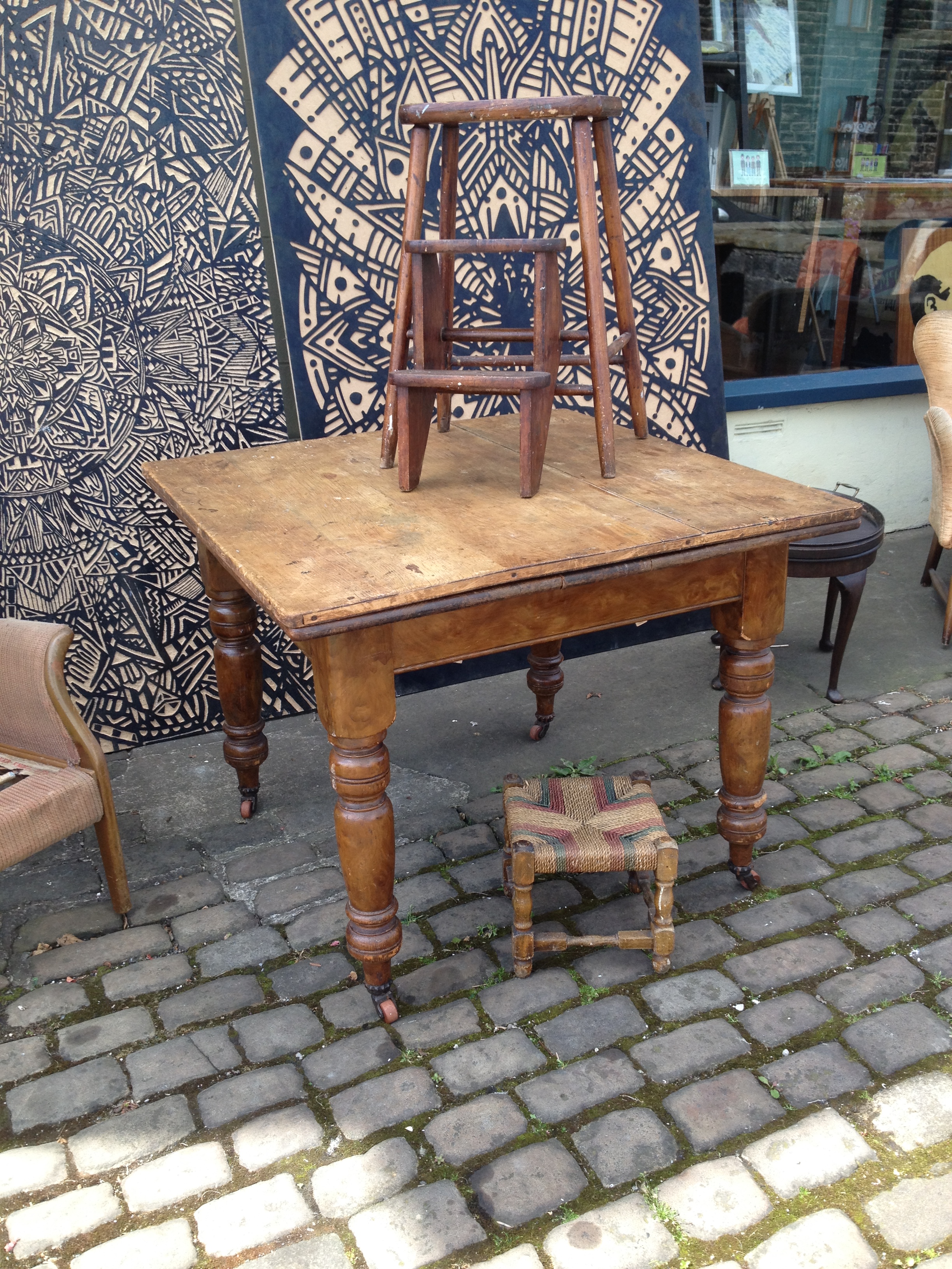 Bought from a Welsh farmhouse that was built in 1660 – its draw leaf scrub top – full of charm and charcter